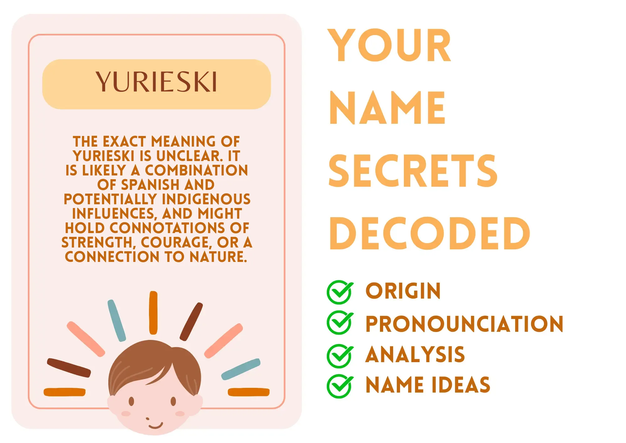Yurieski is a masculine name, though it could be used for girls as well, though less common. It is a name that stands out, reflecting a sense of individuality and heritage. While it might be unfamiliar to some, its distinct sound and potential connection to Cuban culture could make it a memorable and meaningful choice.