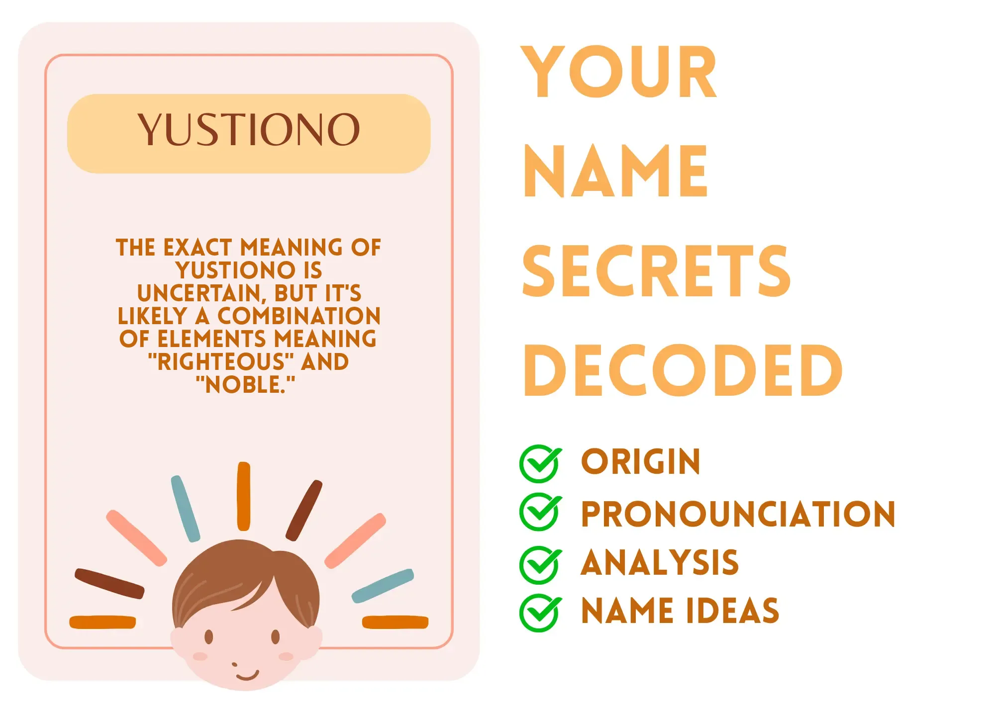 Meaning: The exact meaning of Yustiono is uncertain, but it's likely a combination of elements meaning "righteous" and "noble."