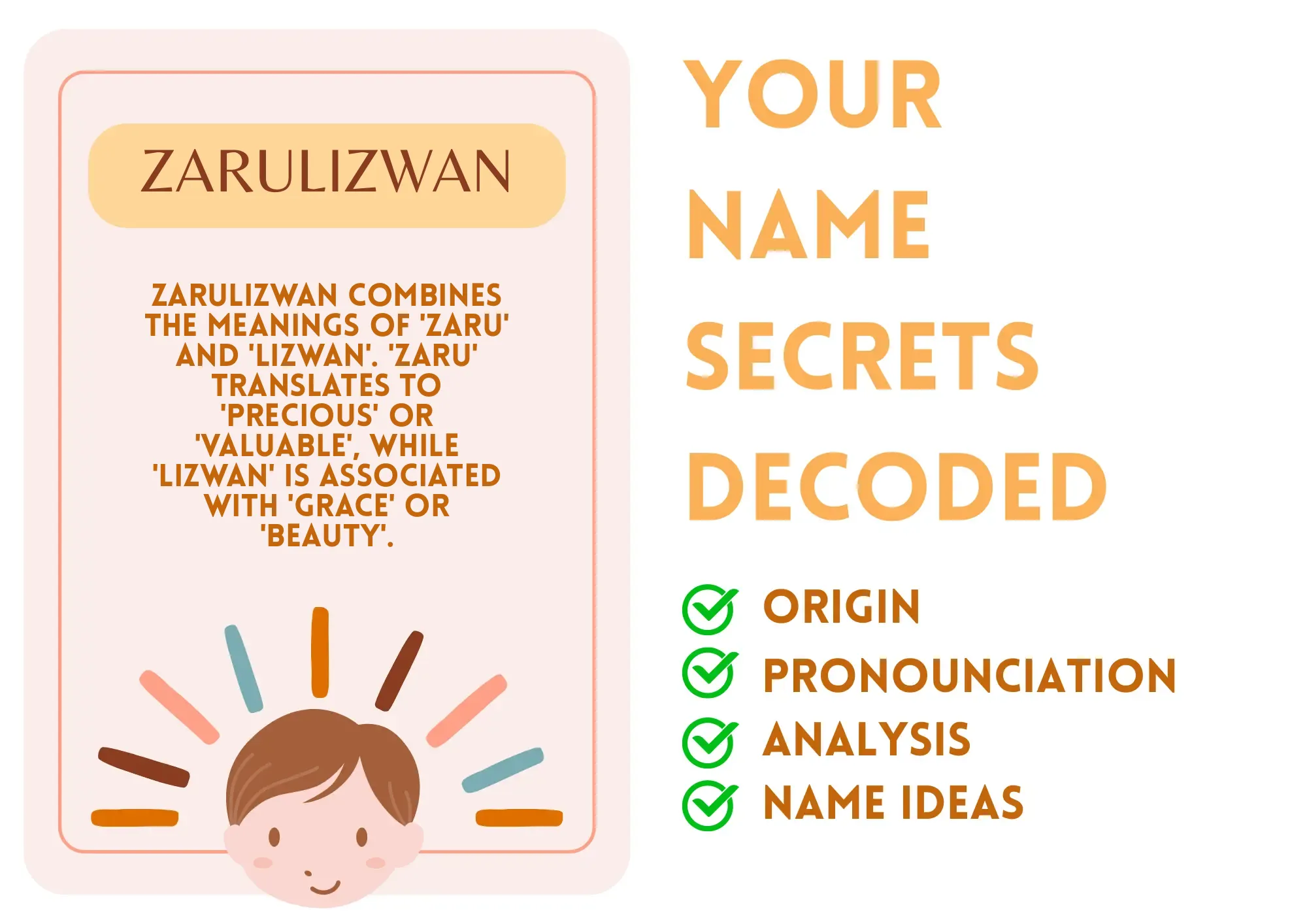 Background: Zarulizwan is a name commonly used among Muslims in Malaysia. The name's meaning reflects Islamic values of beauty, grace, and preciousness.