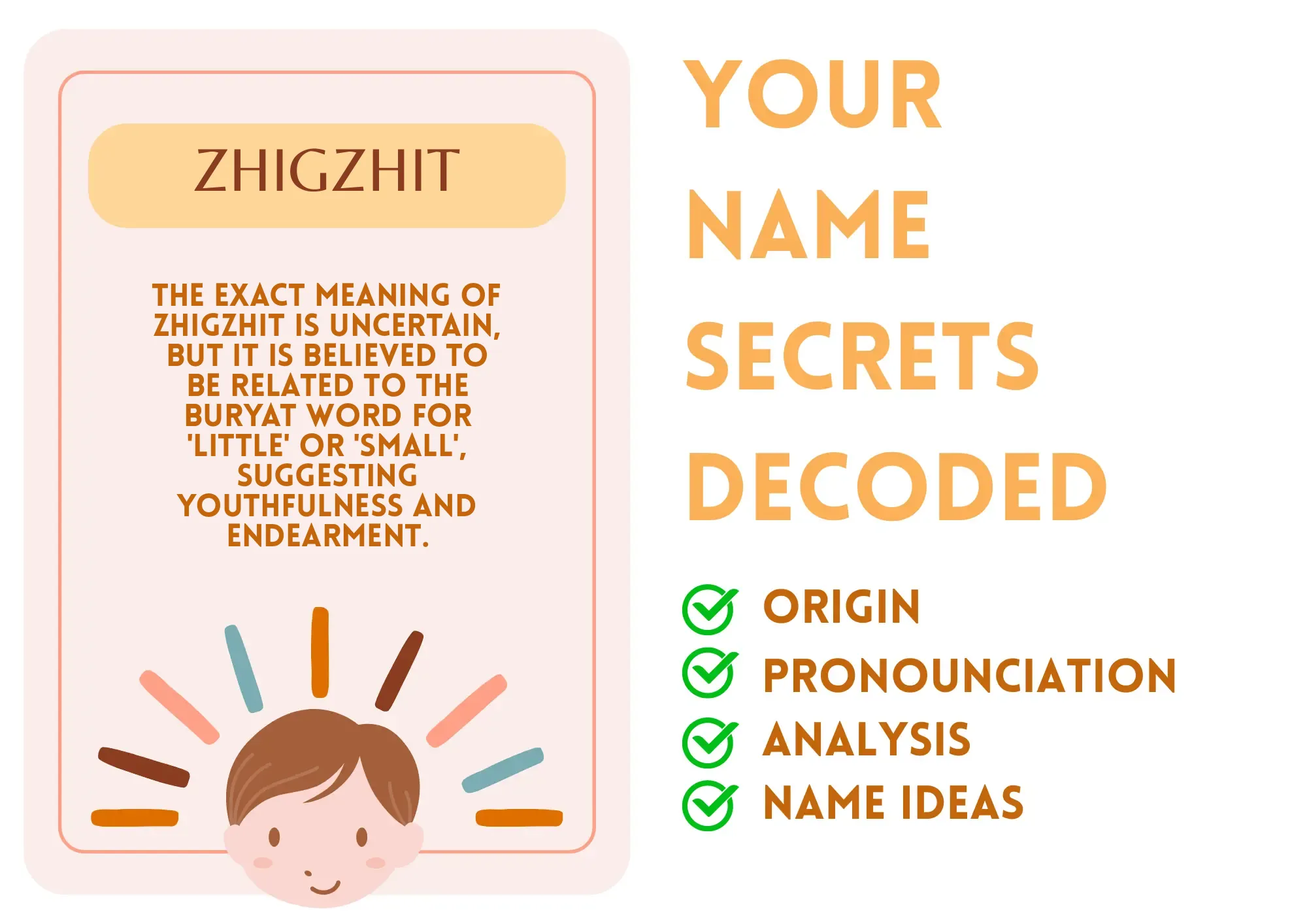 Meaning: The exact meaning of Zhigzhit is uncertain, but it is believed to be related to the Buryat word for 'little' or 'small', suggesting youthfulness and endearment.
