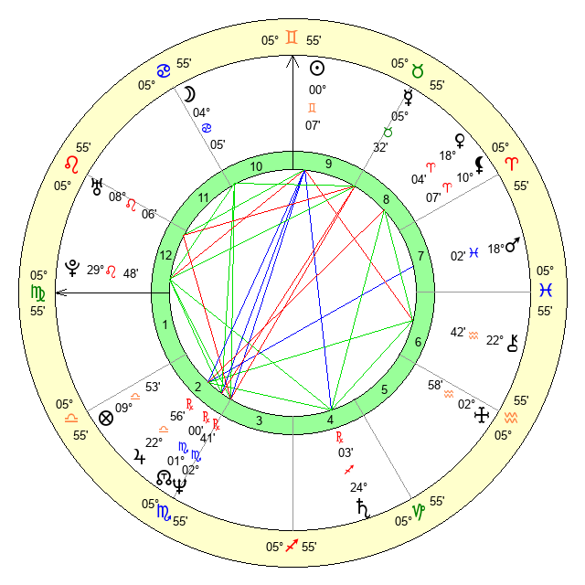 | Sun | 0 Gemini 7 | 0 Gemini 53 | 4 Leo 8 |