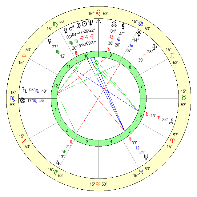 | Mercury | 6 Virgo 27 | 8 Leo 24 | 25 Sagittarius 54 |