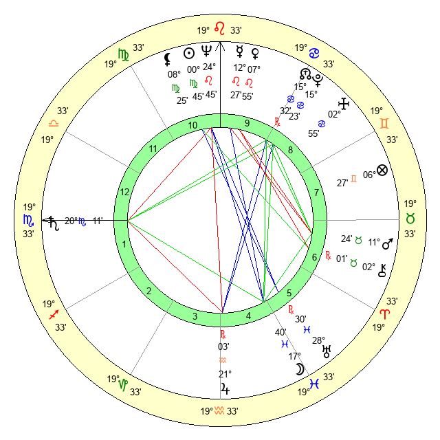 | Sun | 0 Virgo 45 | 1 Virgo 47 | 8 Sagittarius 46 |