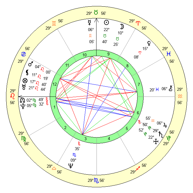 | Moon | 10 Taurus 19 | 4 Sagittarius 13 | 6 Virgo 25 |