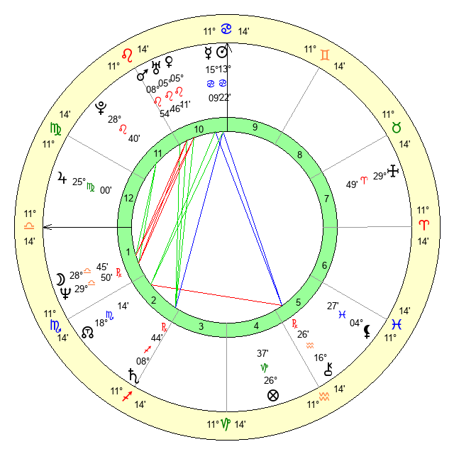 | Sun | 13 Cancer 23 | 13 Cancer 55 | 18 Virgo 40 |
