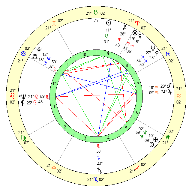 | Neptune | 21 Leo 59 | 1 Aries 9 | 24 Leo 12 |