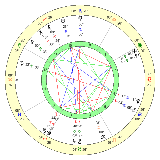 | Neptune | 1 Virgo 19 | 29 Pisces 30 | 29 Leo 55 |