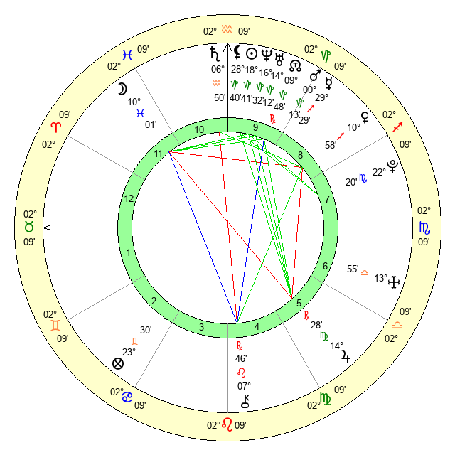 | Moon | 10 Pisces 1 | 25 Taurus 21 | 22 Taurus 40 |