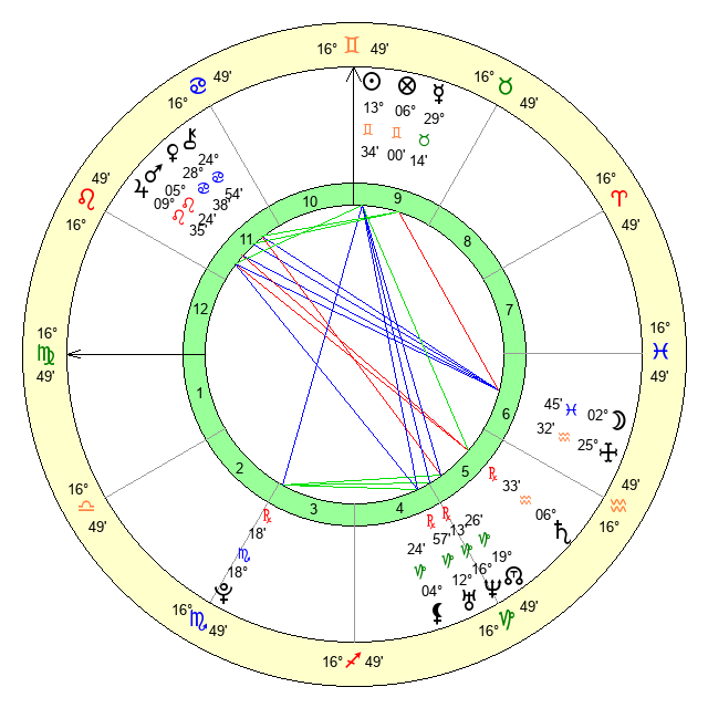 | Moon | 2 Pisces 31 | 1 Libra 44 | 2 Gemini 32 |