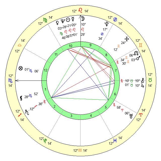 | Mercury | 20 Leo 2 | 4 Leo 55 | 11 Scorpio 28 |