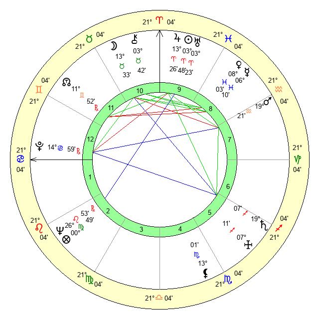 | Venus | 8 Pisces 4 | 1 Aries 38 | 7 Cancer 8 |