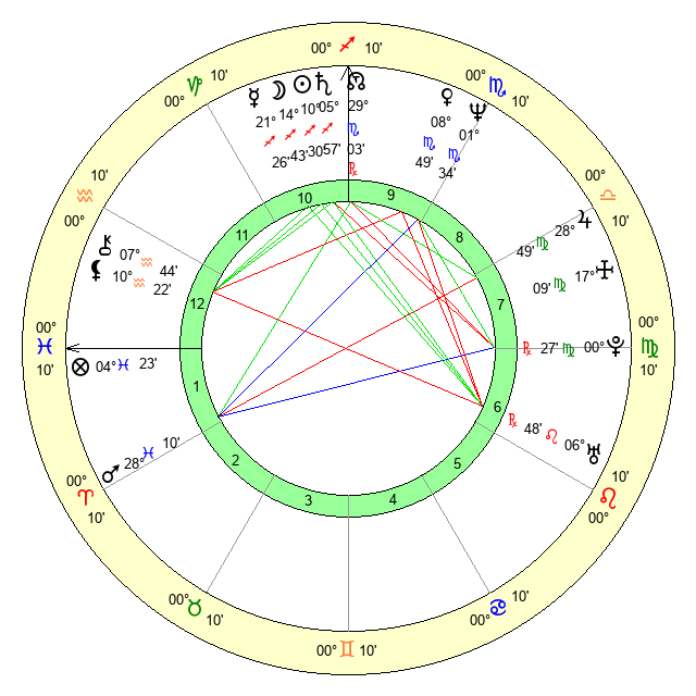 | Pluto | 0 Virgo 26 | 1 Aquarius 56 | 29 Leo 24 |