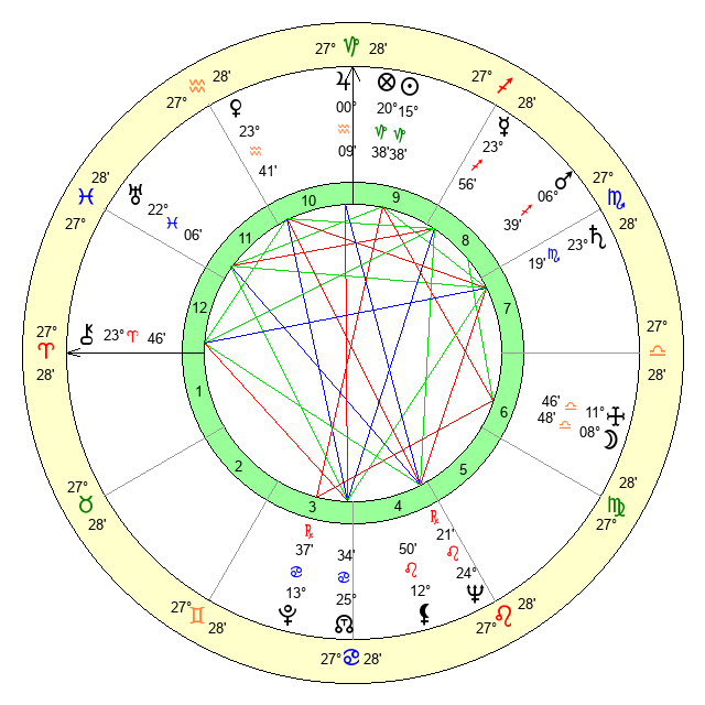 | Saturn | 23 Scorpio 47 | 14 Pisces 55 | 25 Scorpio 18 |