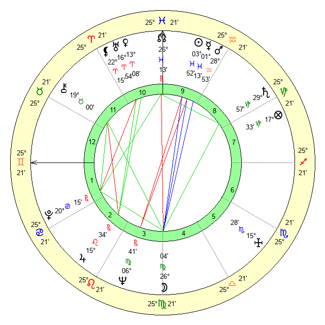 | Sun | 3 Pisces 53 | 5 Pisces 20 | 5 Gemini 12 |