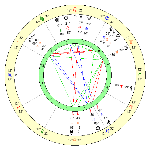 | Mercury | 7 Leo 13 | 5 Leo 23 | 24 Scorpio 52 |