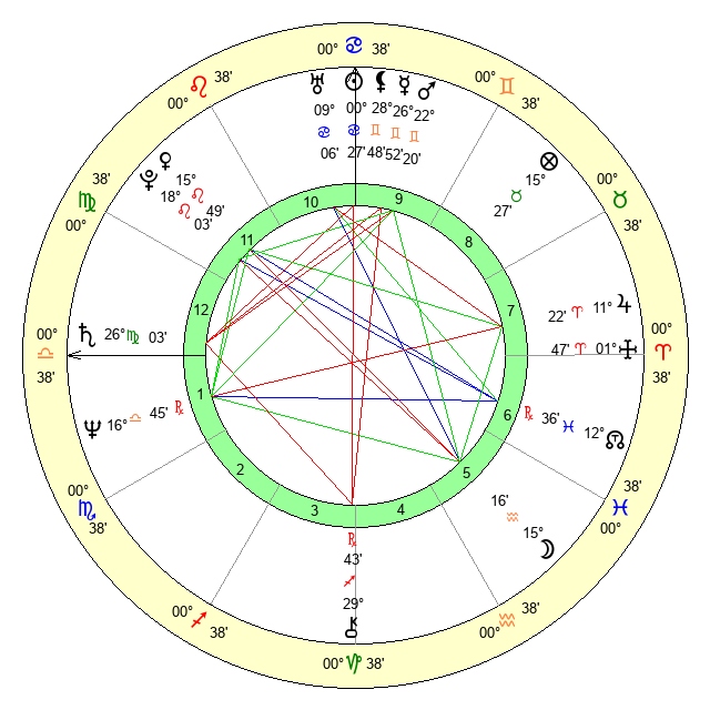 | Saturn | 26 Virgo 35 | 1 Aries 28 | 2 Libra 57 |
