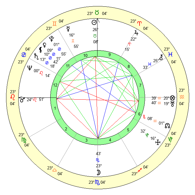 | Neptune | 0 Leo 15 | 1 Aries 33 | 3 Leo 47 |
