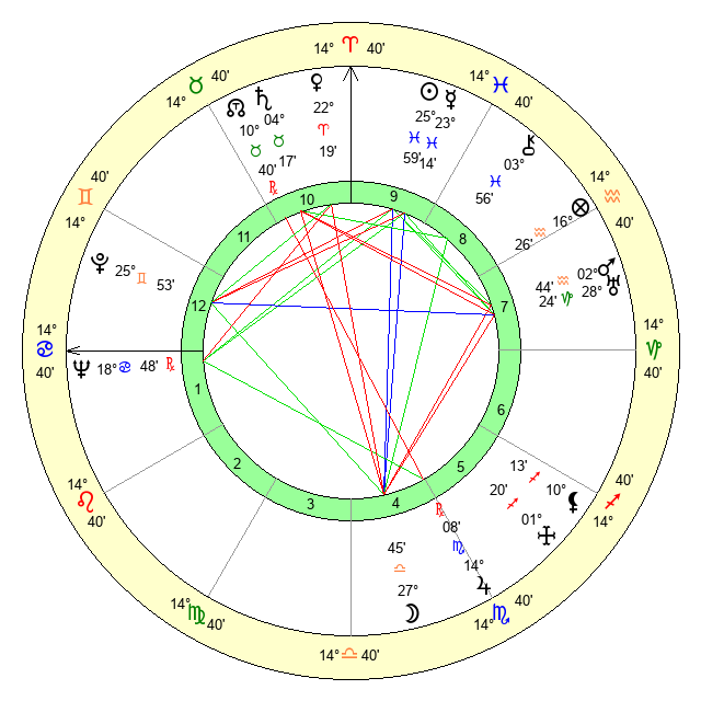 | Sun | 25 Pisces 59 | 27 Pisces 21 | 16 Cancer 21 |