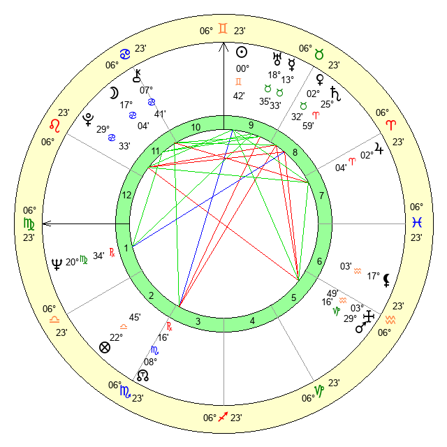 | Moon | 17 Cancer 8 | 0 Aries 20 | 14 Virgo 54 |