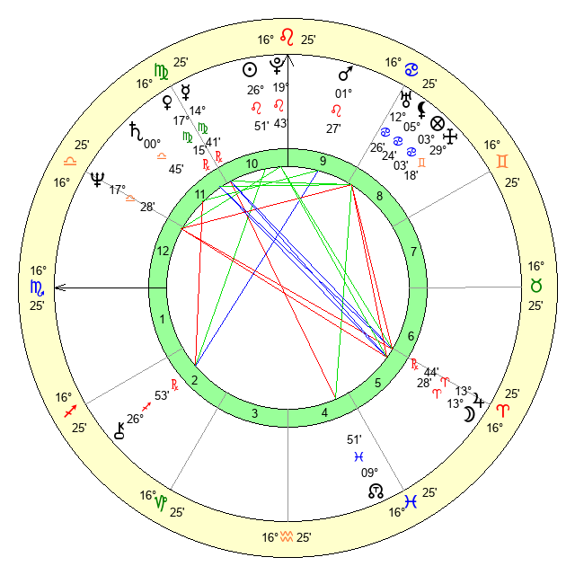 | Mars | 1 Leo 27 | 8 Libra 39 | 17 Virgo 23 |