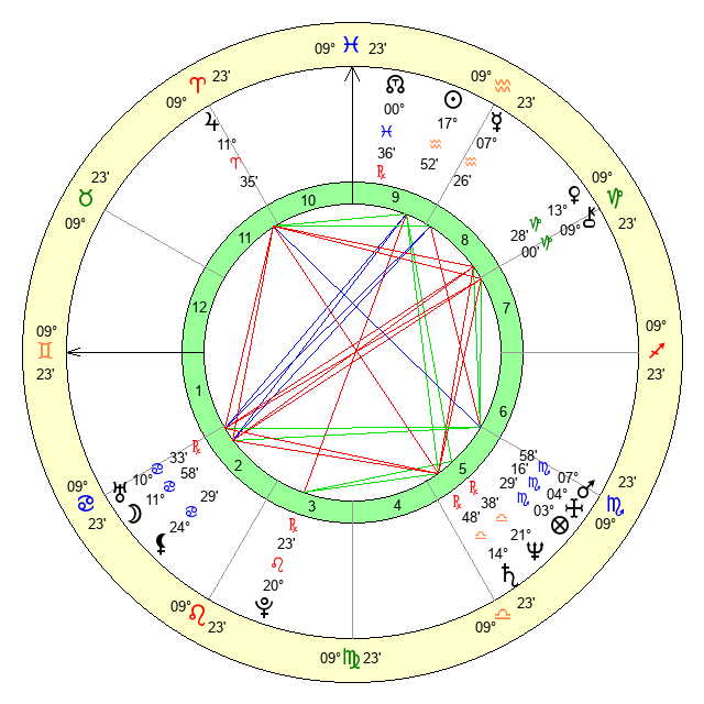 | Moon | 11 Cancer 56 | 19 Gemini 48 | 14 Pisces 18 |