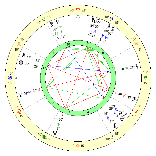 | Sun | 20 Pisces 42 | 21 Pisces 22 | 16 Gemini 30 |