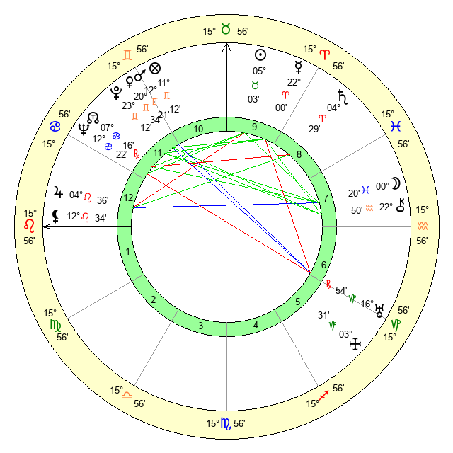 | Sun | 5 Taurus 4 | 5 Taurus 44 | 27 Leo 14 |