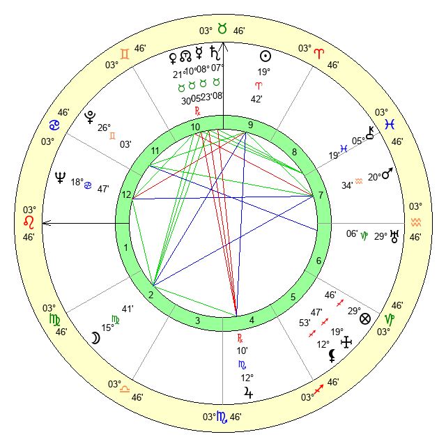 | Sun | 19 Aries 42 | 21 Aries 4 | 9 Leo 16 |