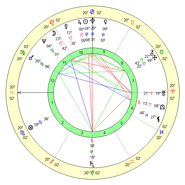 | Venus | 9 Cancer 51 | 14 Gemini 36 | 6 Scorpio 19 |