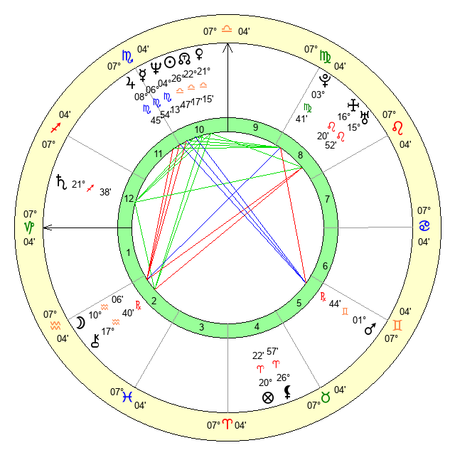 | Neptune | 4 Scorpio 13 | 0 Aries 1 | 6 Scorpio 26 |
