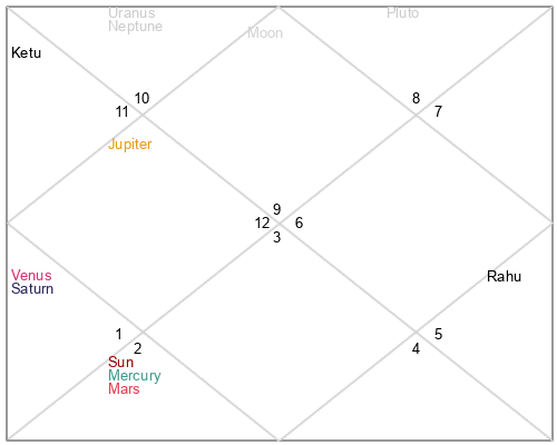 | Rahu | 5 Virgo 9 | 22 Pisces 55 | 3 Virgo 44 |