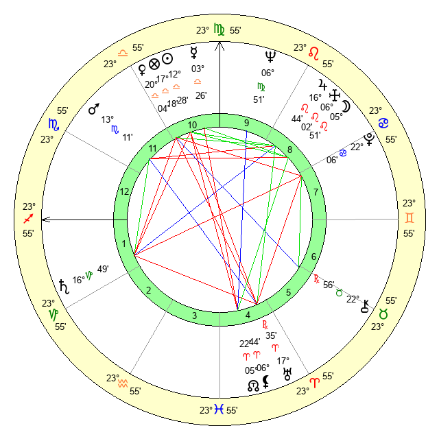 | Neptune | 6 Virgo 52 | 0 Aries 23 | 7 Virgo 45 |