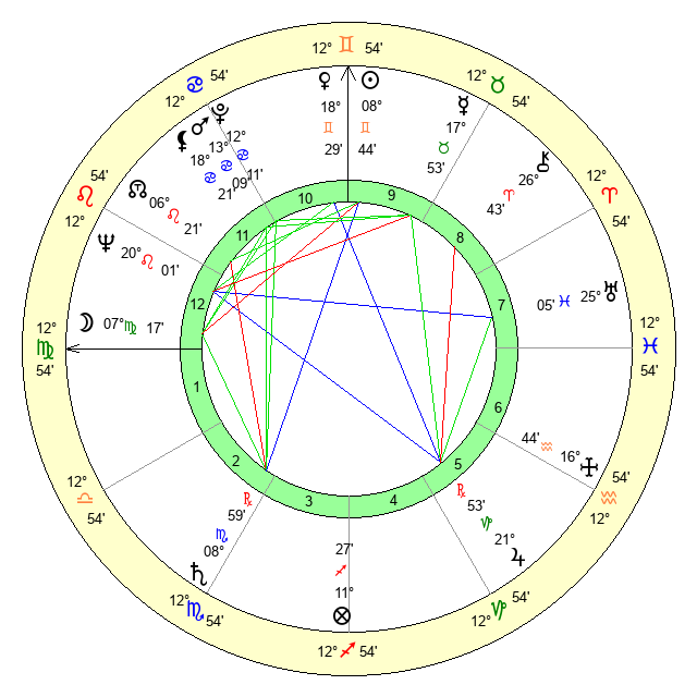 | Moon | 7 Virgo 7 | 28 Cancer 11 | 18 Taurus 5 |