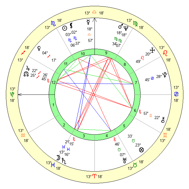 | Neptune | 18 Virgo 7 | 29 Pisces 53 | 18 Virgo 39 |
