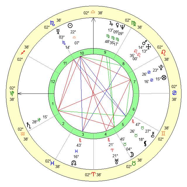 | Sun | 22 Libra 7 | 22 Libra 35 | 26 Capricorn 8 |