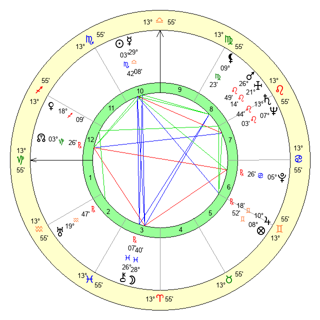 | Sun | 3 Scorpio 42 | 4 Scorpio 32 | 23 Aquarius 11 |