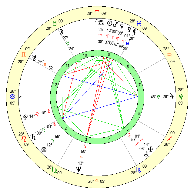 | Mars | 9 Aries 8 | 24 Cancer 10 | 5 Gemini 28 |
