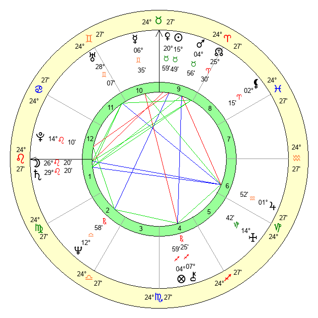 | Moon | 26 Leo 25 | 10 Virgo 57 | 7 Gemini 14 |