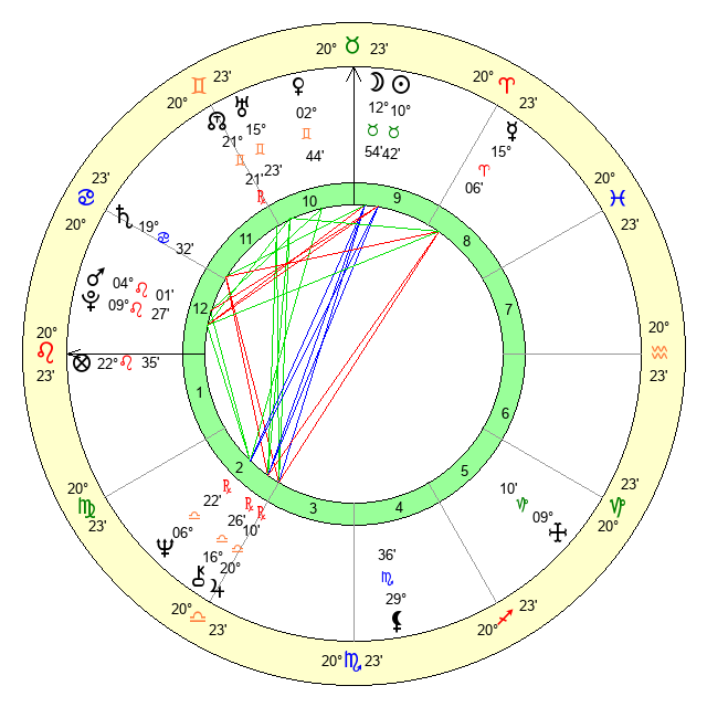 | Moon | 12 Taurus 52 | 5 Cancer 46 | 29 Pisces 23 |