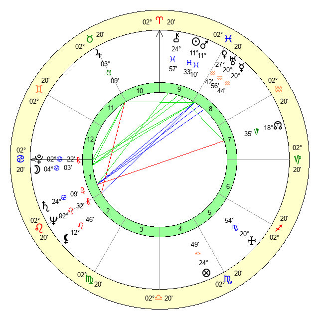| Mars | 11 Pisces 10 | 17 Cancer 17 | 2 Gemini 44 |