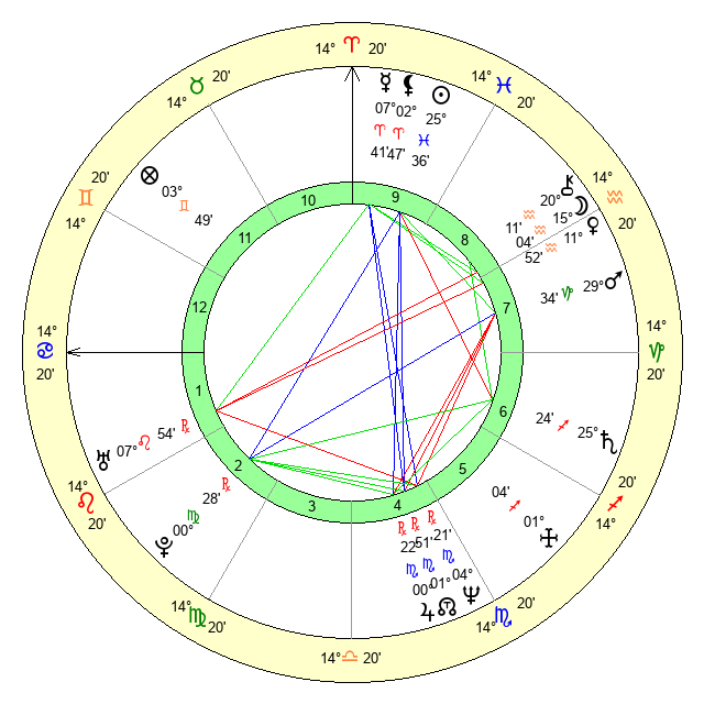 | Moon | 14 Aquarius 58 | 22 Libra 44 | 17 Cancer 13 |