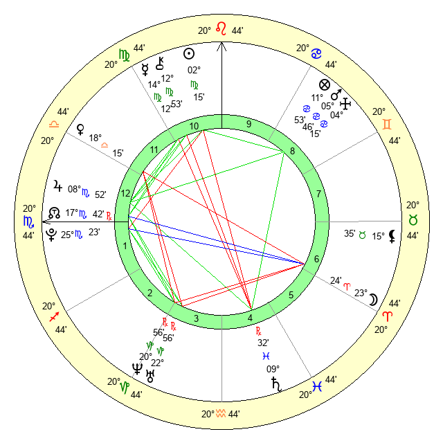 | Venus | 18 Libra 15 | 0 Leo 1 | 12 Scorpio 46 |