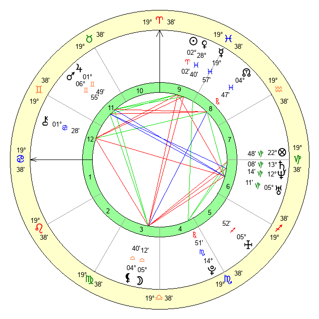 | Mars | 6 Gemini 55 | 20 Cancer 51 | 29 Gemini 5 |