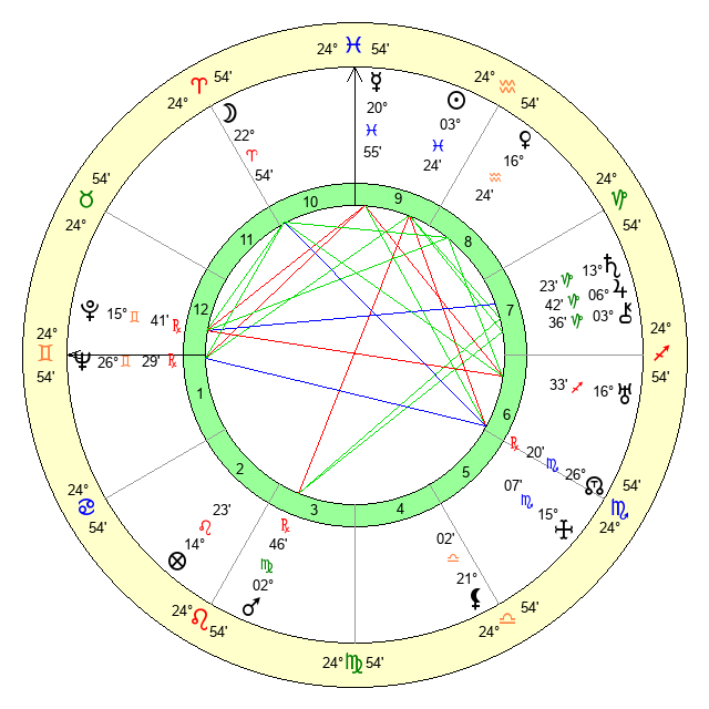| Sun | 3 Pisces 24 | 4 Pisces 19 | 4 Cancer 21 |