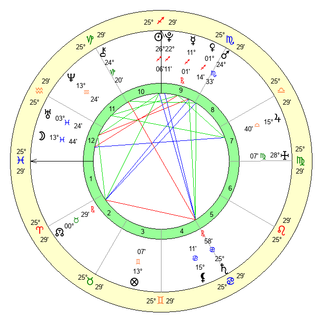 | Moon | 13 Pisces 40 | 26 Cancer 16 | 23 Scorpio 42 |