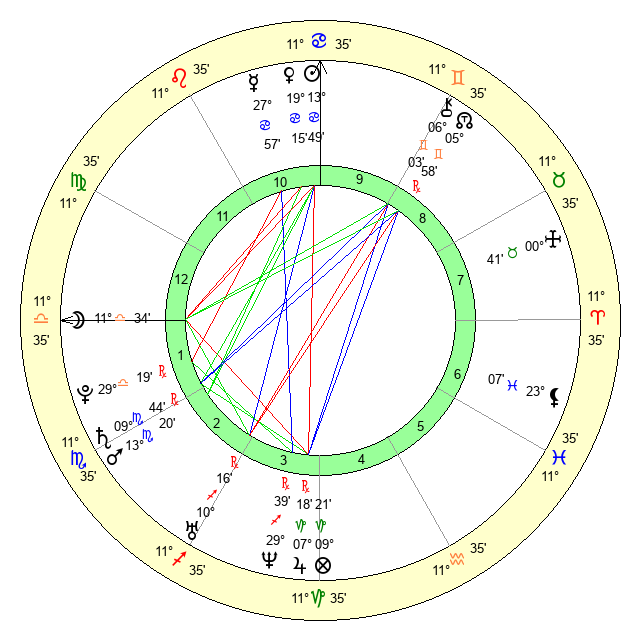 | Venus | 19 Cancer 16 | 1 Gemini 10 | 9 Virgo 43 |