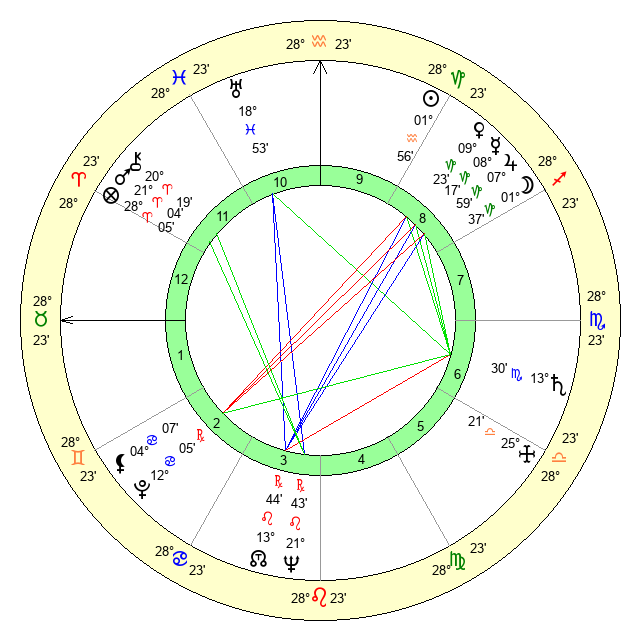 | Saturn | 14 Scorpio 2 | 16 Pisces 21 | 11 Scorpio 34 |