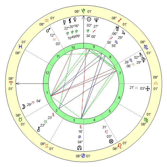 | Moon | 29 Aries 7 | 4 Scorpio 20 | 26 Scorpio 41 |