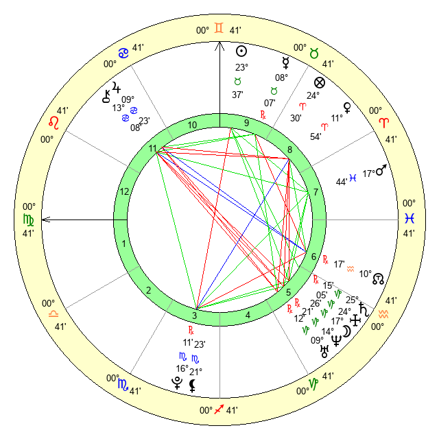 | Pluto | 16 Scorpio 11 | 3 Aquarius 47 | 15 Scorpio 20 |