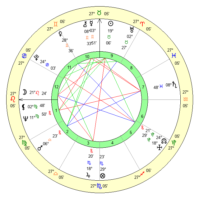 | Mars | 6 Libra 21 | 10 Leo 11 | 5 Scorpio 34 |